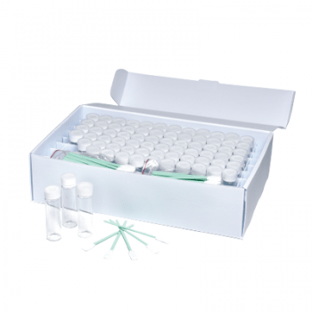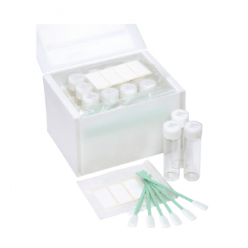kit para validação de limpeza Texwipe TX3342 caixa com 144 swabs, 72 vials para transporte da amostra e 72 etiquetas para identificação.